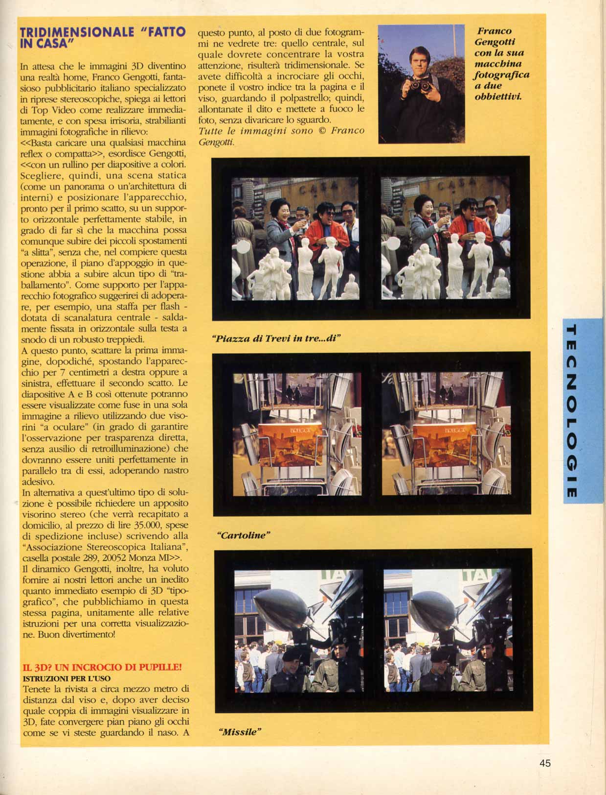 articolo sulla televisione tridimensionalecon una mia pagina dove spiego come vedere in 3Dsenza occhialini (clicca per ingrandire l'ultima pagina a destra)